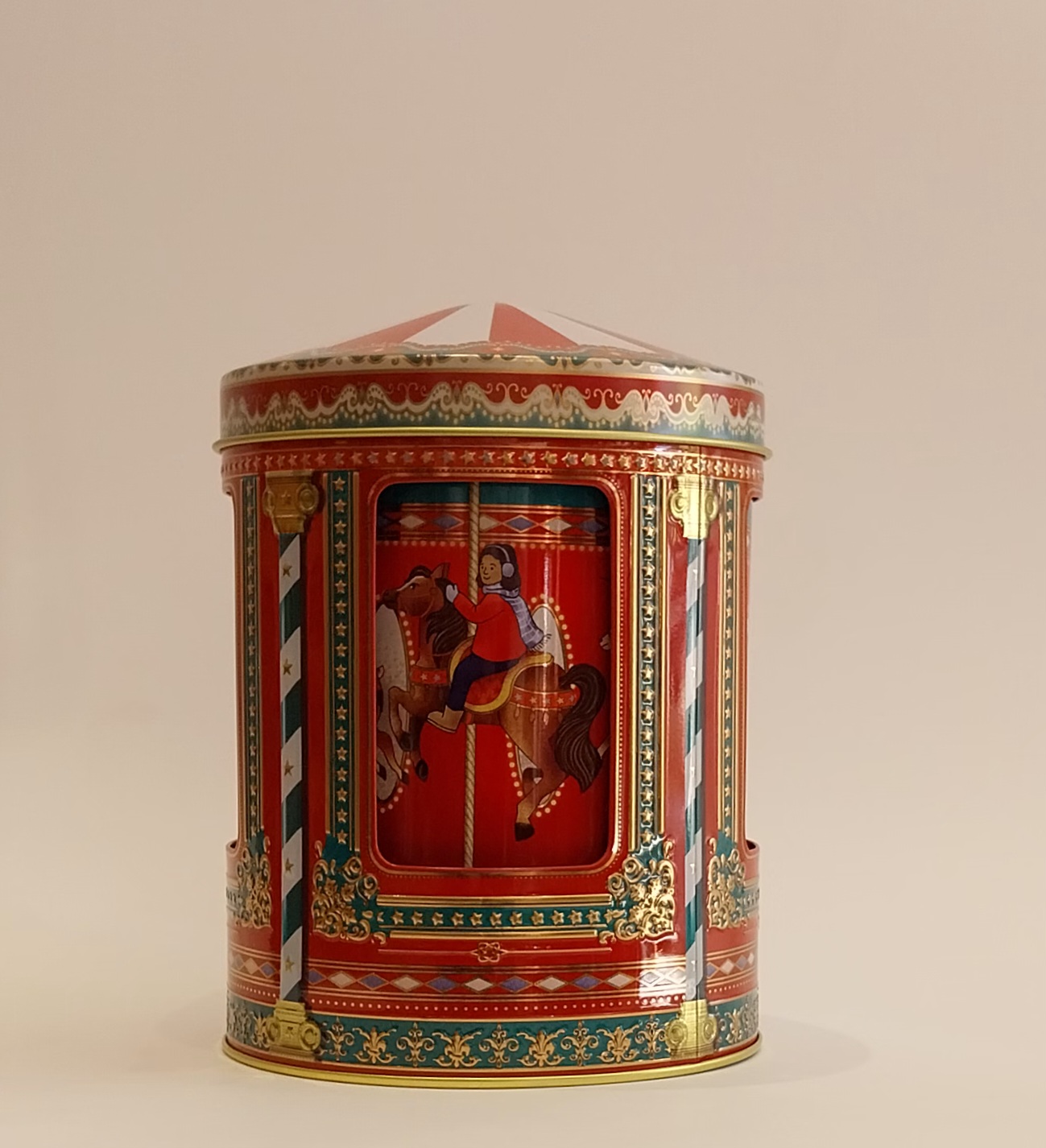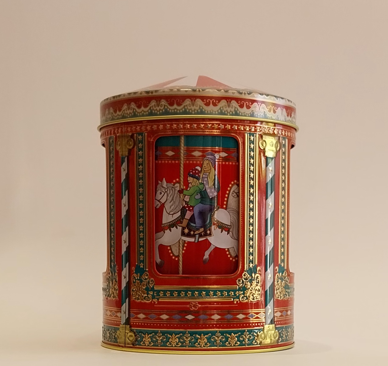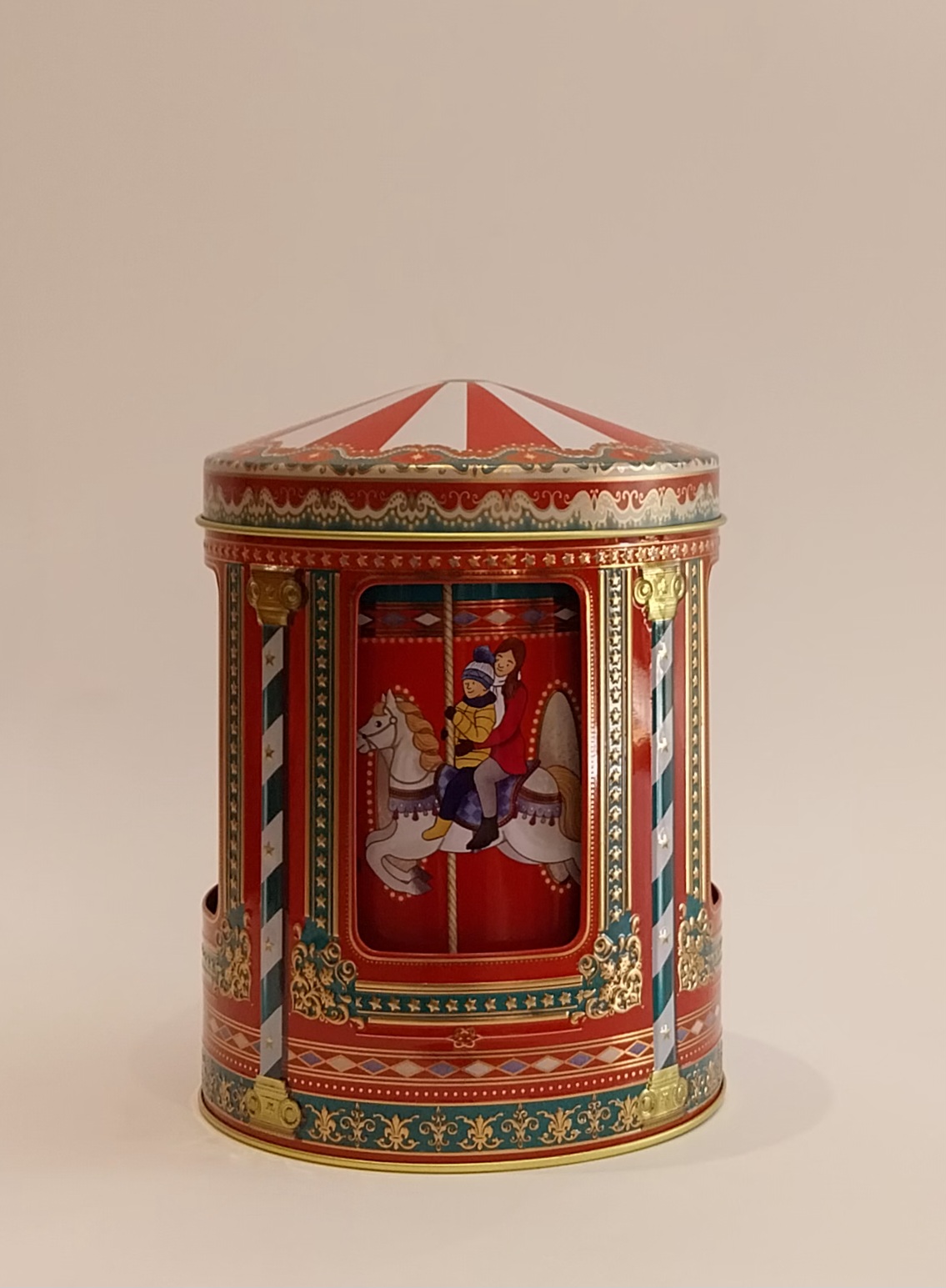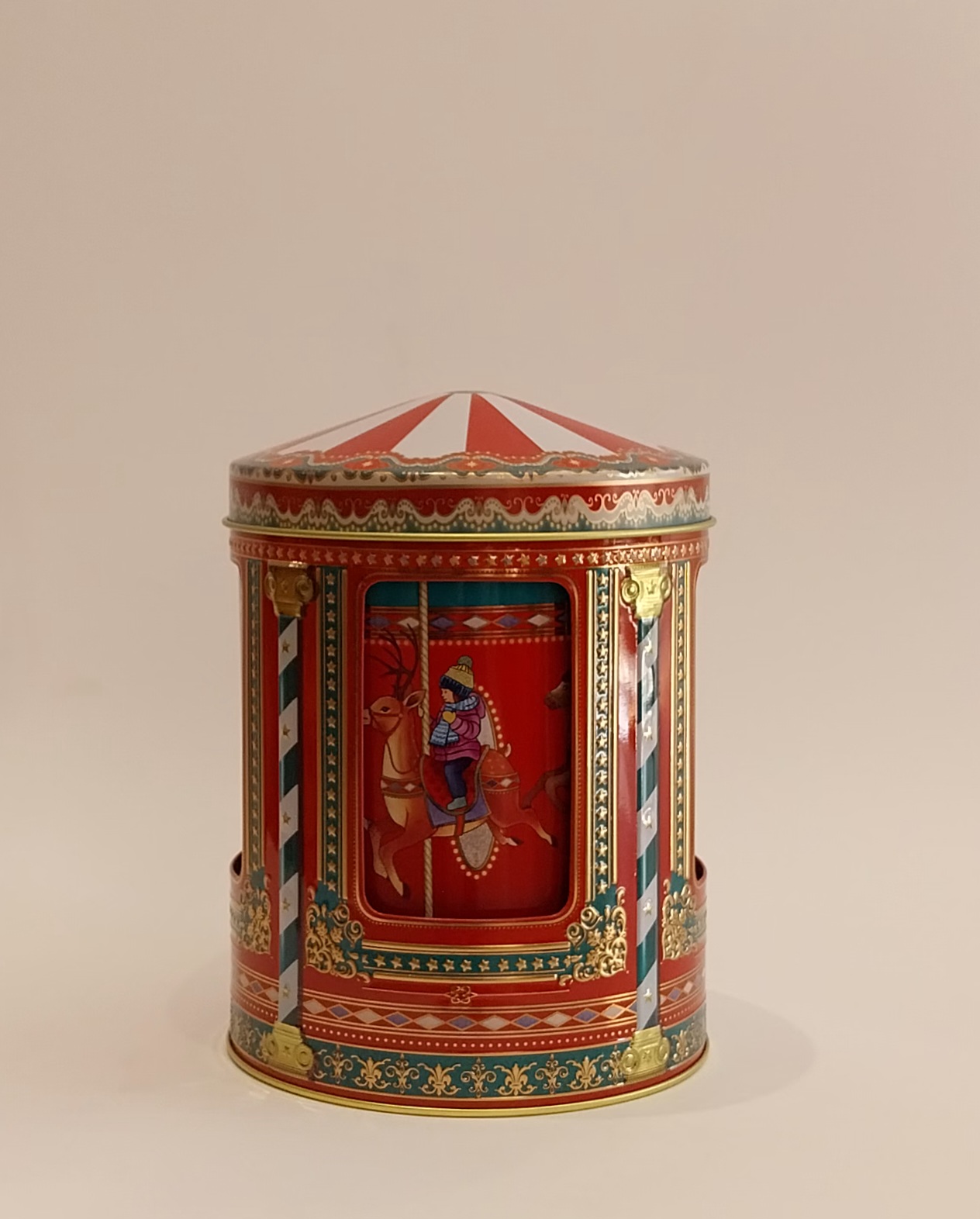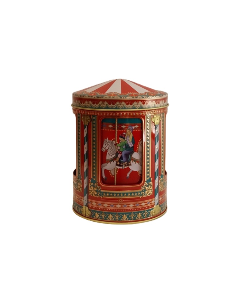 Lata caixa de música - Carrossel de Natal. 17,95 € Desconto de %. IVA incluído. Partilhar O produto encontra-se sem stock. Lata caixa de música. Dimensões: altura de 16 cm e diâmetro de 12 cm. Funciona com corda. Marca Silver Crane Tags Natal